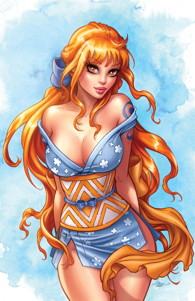 A commission of Nami from One Piece, done in 2024. Also available in Bikini and Risque variants.